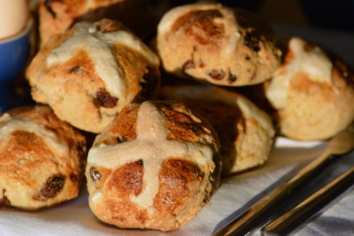 It’s Easter and yesterday I had a strong craving for hot cross buns. These spiced fruit buns are common in the UK and traditionally eaten on Good Friday.
